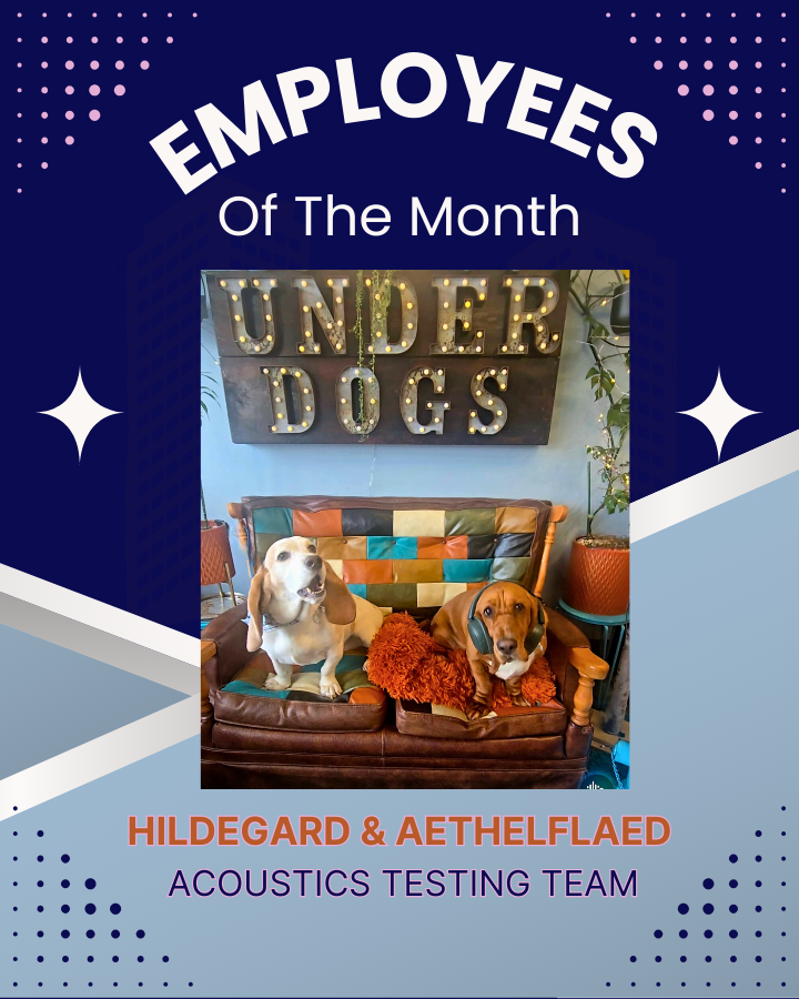 Hildy’s and Aethel’s pure, raw talent at reaching incredibly high decibels with their signature “AWOOOS” are impressive even by Basset Hound standards. When they are in the building, we are able to truly test all of our personal ear protection gear. Standard foam earplugs are blasted into dust in seconds. Ear protection designed for use by hunters makes for a more formidable opponent against their thunderous baying, but ultimately the only way to bring the decibel level down to OSHA standards are the combined powers of Loop Earplugs and Bose noise canceling headphones. Few are aware of this but the hexagonal tiles on our walls are actually acoustic sound-absorbing tiles strategically placed in an effort to minimize any disturbance to our neighbors. Hilde and Aethel had quite the laugh when we told them about this. They laughed so loud that it echoed throughout the entire shopping center. Rumor has it the washers and dryers at the laundromat stopped working, nail polish bottles at Magic Nail fell off the walls, the Himalayan salt caves in Saltitude collapsed, bottles shattered right off the shelves in the liquor store, and all of the hard-shell tacos at Oz wilted back into soft shell tortillas. Even the most delicious cakes baking at Gingersnaps fell, ruining at least 4 weddings and a funeral and then all the mightiest cookies crumbled to the ground unable to withstand the resounding roars of our celebrated pair of hounds.